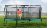 Cama elástica ovalada BERG Grand Champion con red de seguridad Deluxe, una cama elástica muy grande de la mejor calidad con las últimas innovaciones. El sistema de muelles Twinspring de doble muelle en forma de "v" , aumenta el área de salto perfecto y aporta mejor confort en el salto. La lona elástica tiene unos poros más abiertos que dejan fluir el aire con más libertad, es la llamada tela Airflow que junto con los muelles twingsping hacen el mejor salto. La estructura del trampolín está bien protegida para el exterior y tiene un elegante color negro que le da una protección extra. La red de seguridad Deluxe bien integrada en la cama elástica mantiene siempre la red firme. La cama elástica BERG Champion tiene un borde protector muy ancho y grueso disponible en los colores verde o gris.