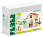 Casa de grandes dimensiones con amplio espacio interior para jugar. Puerta con buzón de cartas, ventanas abatibles, bandeja de juegos.