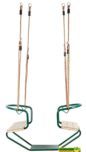 Un bonito asiento de madera doble con estructura de metal para poner en un columpio.
