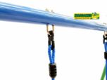 Los asientos individuales son de PE de color azul y las cuerdas son de 12 mm de diámetro de PP