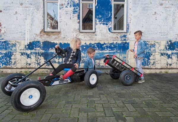 El remolque es compatible con los karts de pedales grandes de BERG TOYS es decir con los modelos que son para los niños y niñas de más de 5 años en adelante.