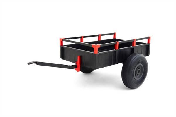 Este remolque tiene las ruedas de neumático, es fácil de enganchar a los karts de pedales.