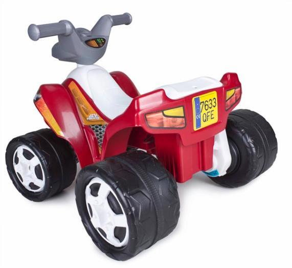 Quad para los más pequeños de la casa. El Quad 82 funciona con motor y bateria 6V. El quad acelera con el pie y tiene freno eléctrico. La batería y el cargador están incluidos.