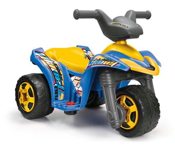 Tribike Planet de la marca Feber funciona con motor y bateria 6V. El quad acelera con el pie y tiene freno eléctrico. La batería y el cargador están incluidos.